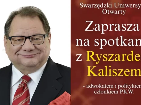 Swarzędzki Uniwersytet Otwarty zaprasza mieszkańców Swarzędza i okolic na kolejne spotkanie w ramach cyklu wykładów otwartych. Gościem wydarzenia będzie Ryszard Kalisz – adwokat, polityk oraz członek PKW. Spotkanie odbędzie się 4 marca 2026 roku (środa) o godz. 17:00 w Eurohotelu przy ul. Cieszkowskiego 33 w Swarzędzu. Wstęp wolny. Partnerami wydarzenia są: