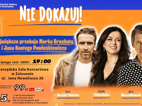 Zapraszamy na wydarzenie, w którym ponadczasowa twórczość Marka Grechuty i Jana Kantego Pawluśkiewicza spotyka się z humorem, lekkością i spontanicznością! „Nie Dokazuj! Największe przeboje Marka Grechuty i Jana Kantego Pawluśkiewicza” to nie tylko koncert – to pełna emocji podróż przez największe przeboje tych wyjątkowych artystów, opowiedziana z dystansem i uśmiechem.…