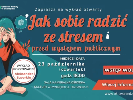 Czy na samą myśl o występie publicznym czujesz napięcie, drżenie rąk lub przyspieszone bicie serca? Nie jesteś sam. Stres przed wyjściem na scenę to zjawisko powszechne – dotyczy zarówno artystów, uczniów, nauczycieli, jak i osób występujących zawodowo. Podczas wykładu dowiesz się: To spotkanie dla wszystkich, którzy chcą lepiej radzić sobie…