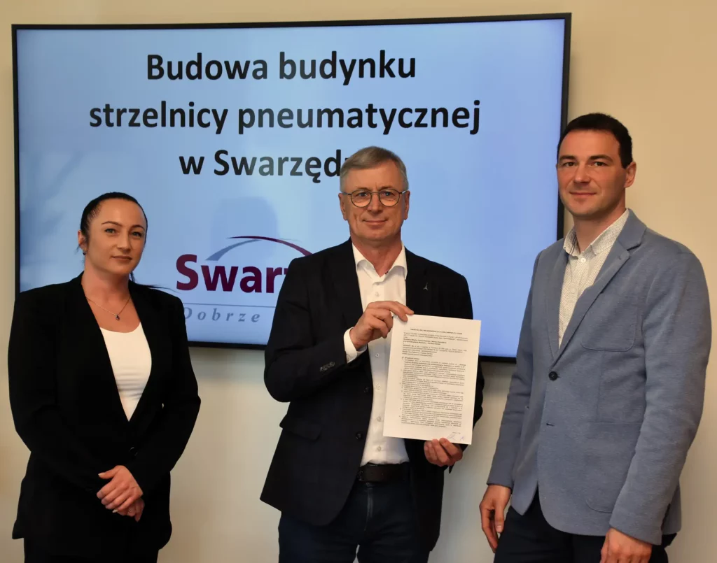 27 kwietnia w swarzędzkim ratuszu Burmistrz Miasta i Gminy Swarzędz Marian Szkudlarek podpisał umowę na realizację zadania pn. „Budowa budynku strzelnicy pneumatycznej w Swarzędzu”. Wykonawcą inwestycji została firma DAKKART Sp. z o.o. z Poznania.